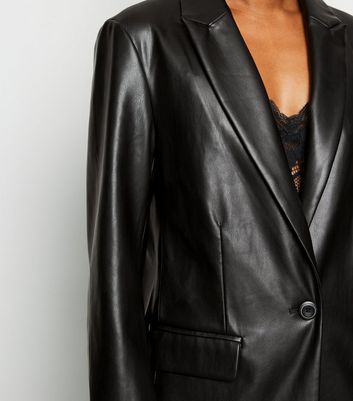 Black leather look blazer clearance, Black Coated Leather-Look Blazer | New Look clearance