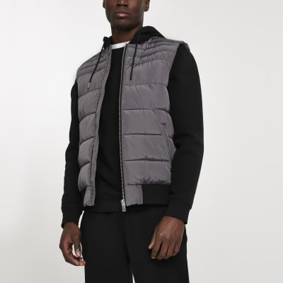 River island gilet mens clearance, Grey hooded gilet | River Island clearance