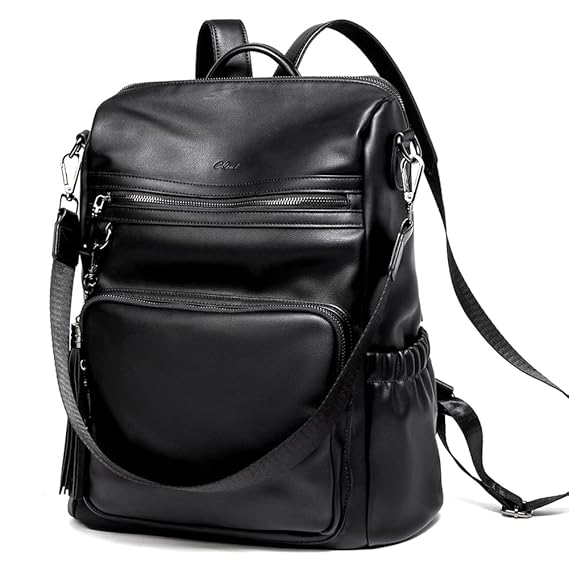 - Womens black leather backpack purse