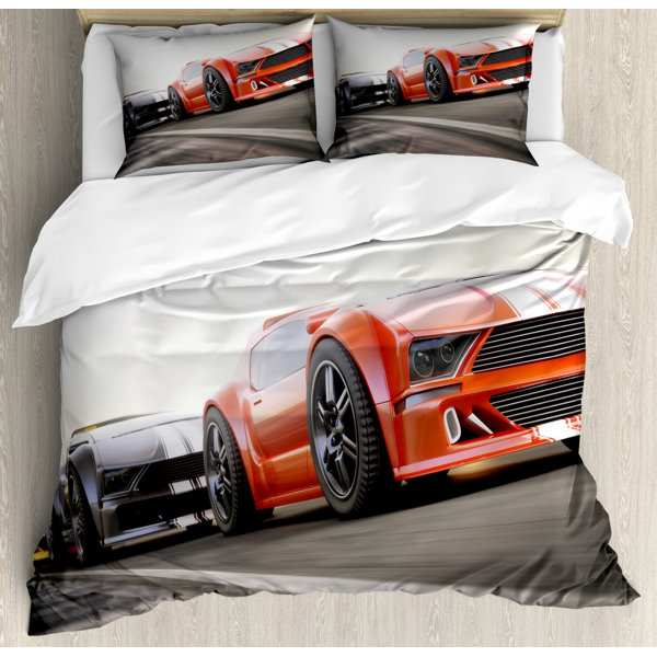 Cars duvet cover set clearance, Cars Duvet Cover Set, Modern Red Sports Car on Dramatic Sky Backdrop with Dark Cloudscape Strong clearance
