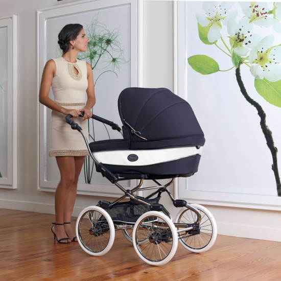 Bebecar pram blue clearance, Bebecar Stylo Class+ Classic Pram + Lie Flat Car Seat Travel System, Raincover & FREE Bag clearance
