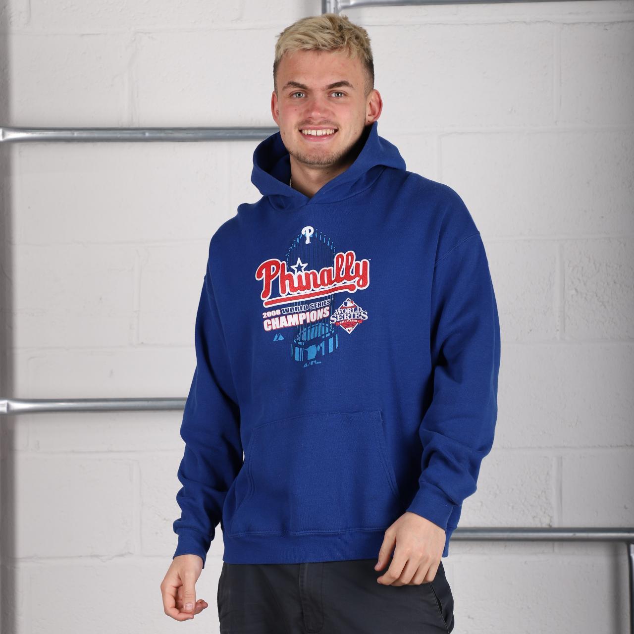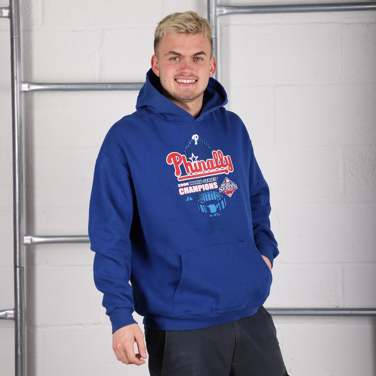 Majestic phillies hoodie clearance, Majestic Phillies hoodie in blue with graphic print. - Depop clearance