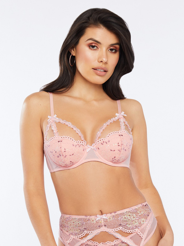 Savage fenty pink clearance, Iridescent Lace Caged Bra in Pink clearance