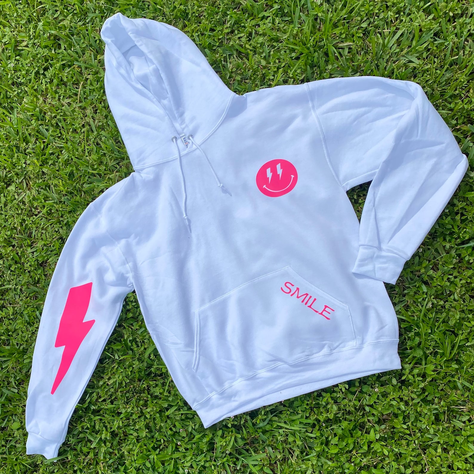 Face hoodies clearance, Preppy Hot Pink Lightning Smiley Face Hoodie | Etsy clearance