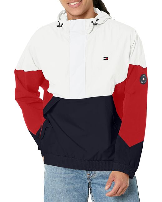 Tommy hilfiger windbreaker hoodie clearance, Tommy Hilfiger Retro Lightweight Taslan Hooded Popover Water Resistant Windbreaker Jacket in Red clearance