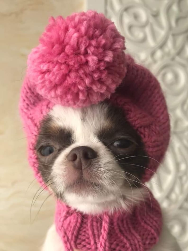 Dog pom pom hat clearance, Small dog pom pom hat snood hood KNIT PATTERN small dog hat | Etsy clearance