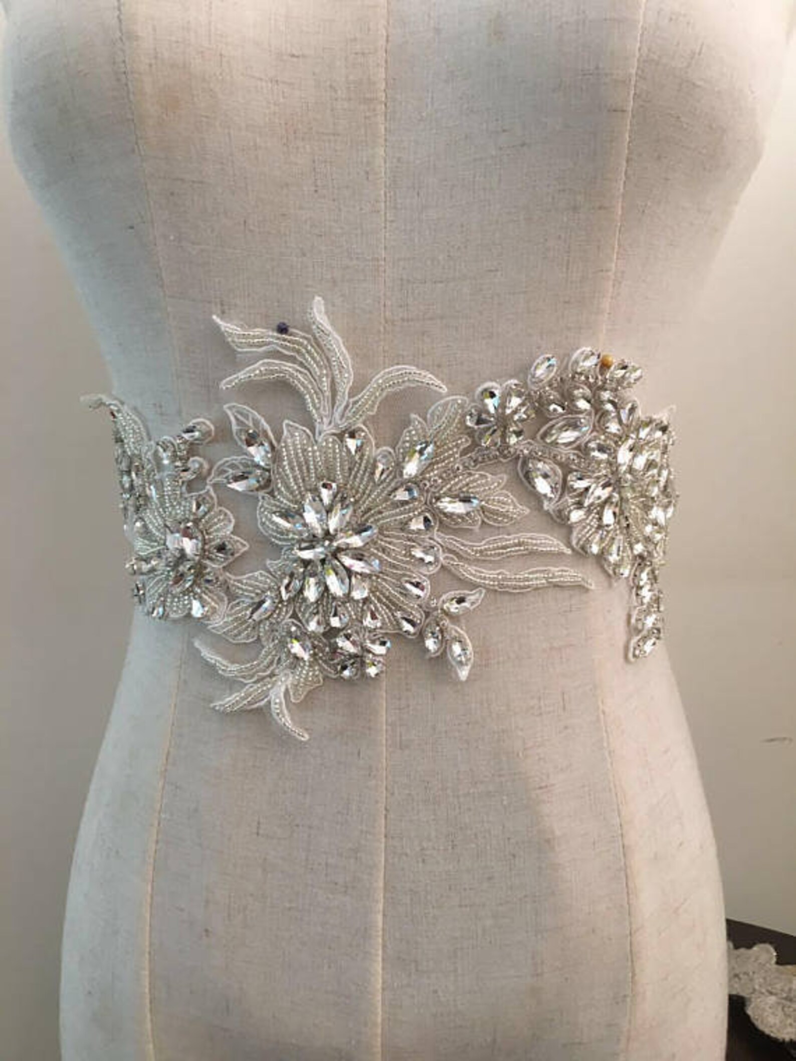 Beaded lace applique clearance, Luxury Rhinestone Beaded Lace Applique Pair in Silver - Etsy clearance