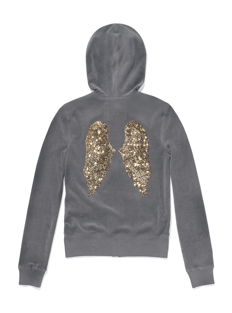 Victoria secret angel wing hoodie xl clearance, Victoriaâs Secret supermodel essentials charcoal gold sequin angel wing hoodie in 2022 | Angel clearance