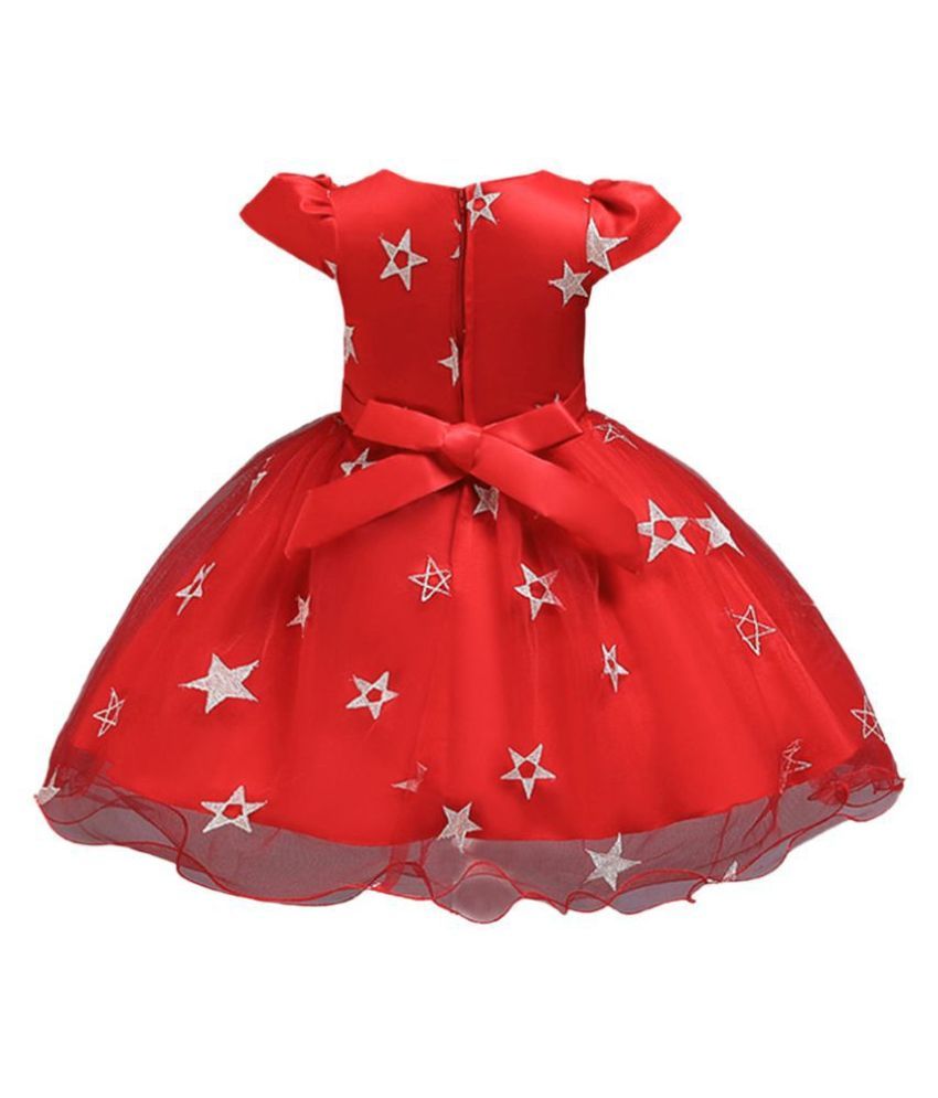 Baby girl party wear hopscotch clearance, Hopscotch Baby Girls Viscose, Polyester Cap Sleeves Star Printed Party Dress in Red Color For clearance