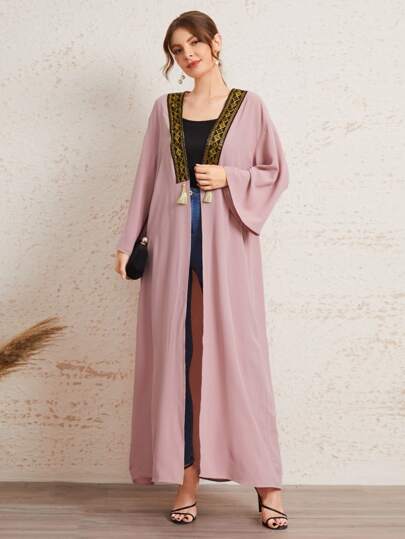 Abaya shein clearance, SHEIN Najma Pearls Beaded Batwing Sleeve Open Front Abaya | SHEIN USA clearance