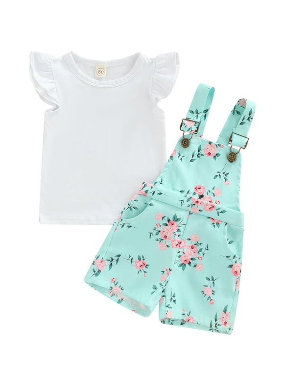 Baby girl shorts set clearance, Amazon.com: Baby Girls Floral Shorts Set, Ruffle Sleeve Ribbed Top + Floral Suspender Shorts Set clearance