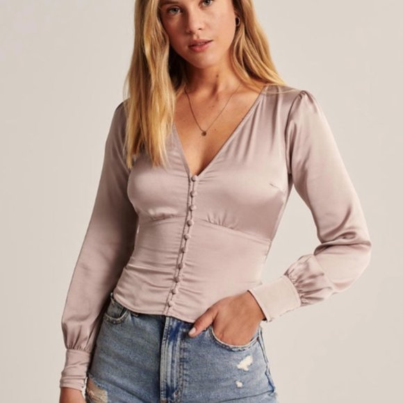 - Abercrombie long sleeve satin top clearance