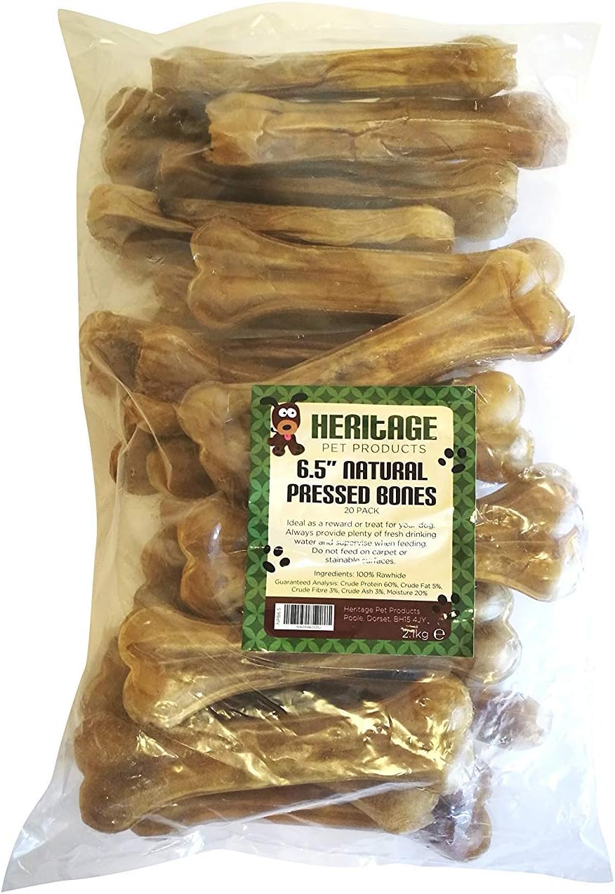 Amazon rawhide dog chews clearance, Heritage Pet Products 6.5" Natural Pressed Rawhide Knuckle Bones Raw Hide Dog Chews Bone Treats clearance
