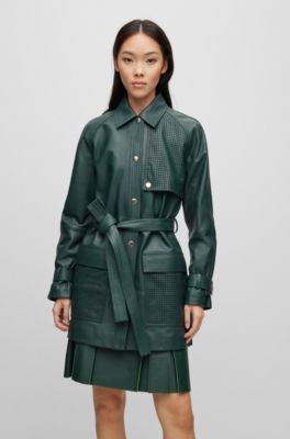 Hugo boss perforated leather jacket clearance, Hugo Boss Relaxed-fit Longline Leather Jacket With Perforated Details In Light Green | ModeSens clearance