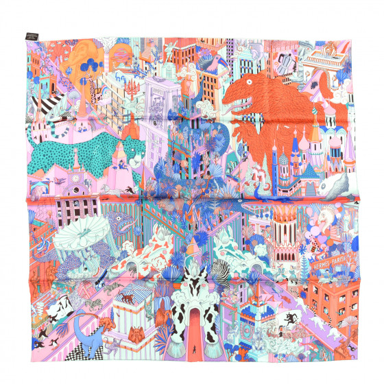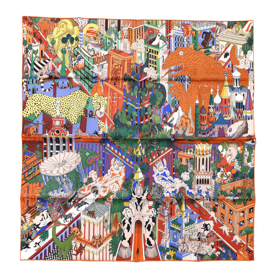 Animapolis scarf hermes clearance, HERMES Silk Animapolis Scarf 90 Orange Vert Bleu 423960 | FASHIONPHILE clearance