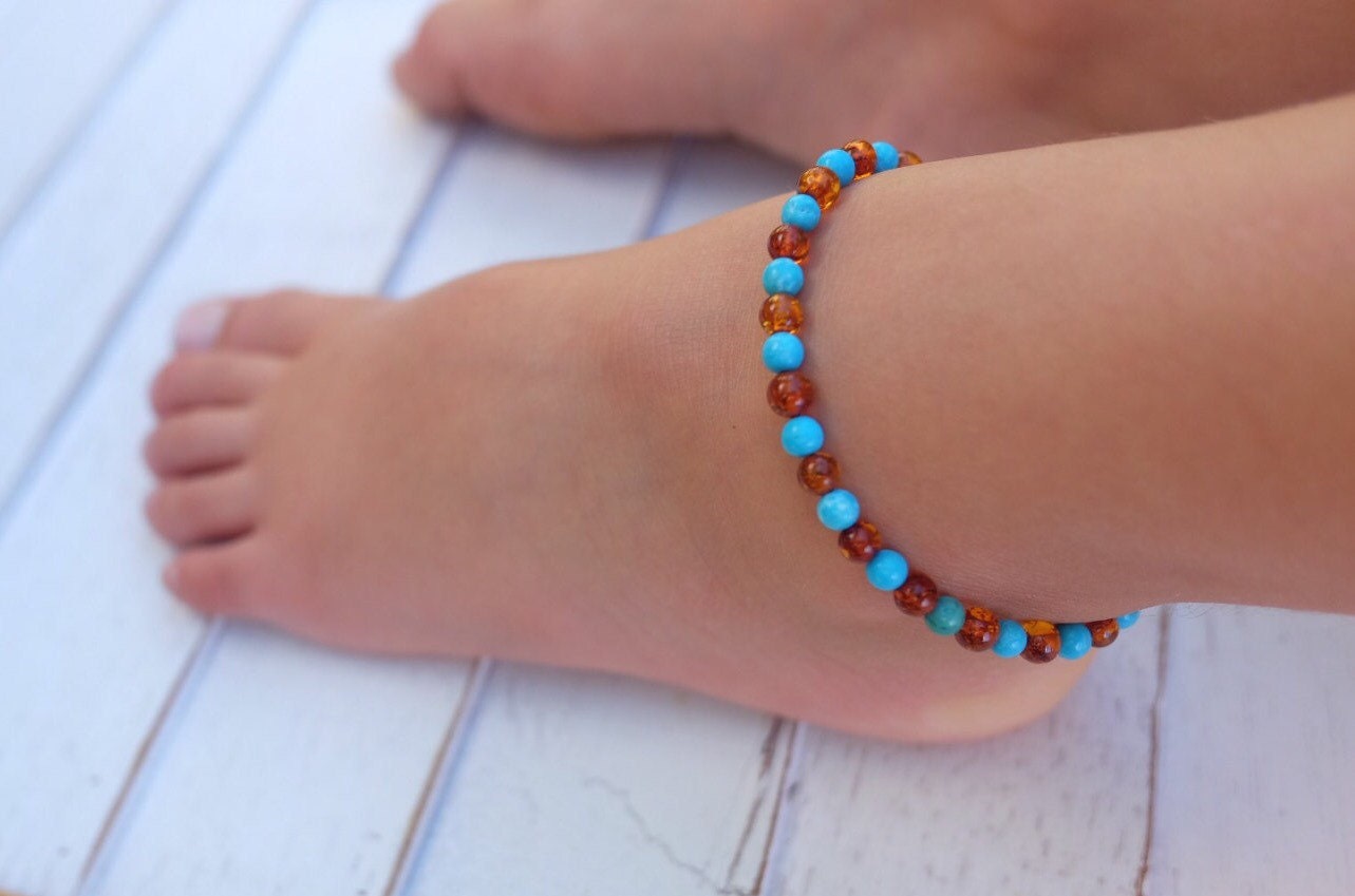 - Amber teething anklet baby sale