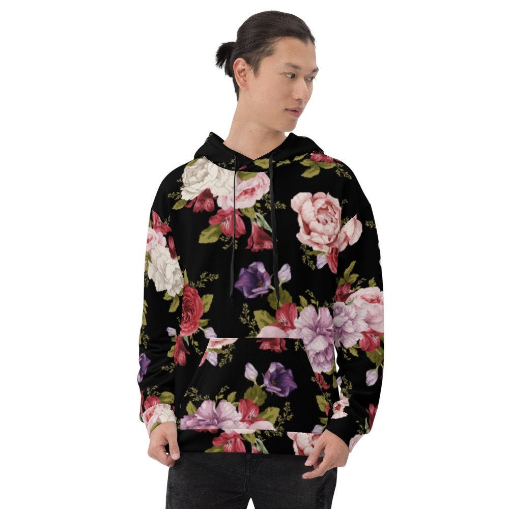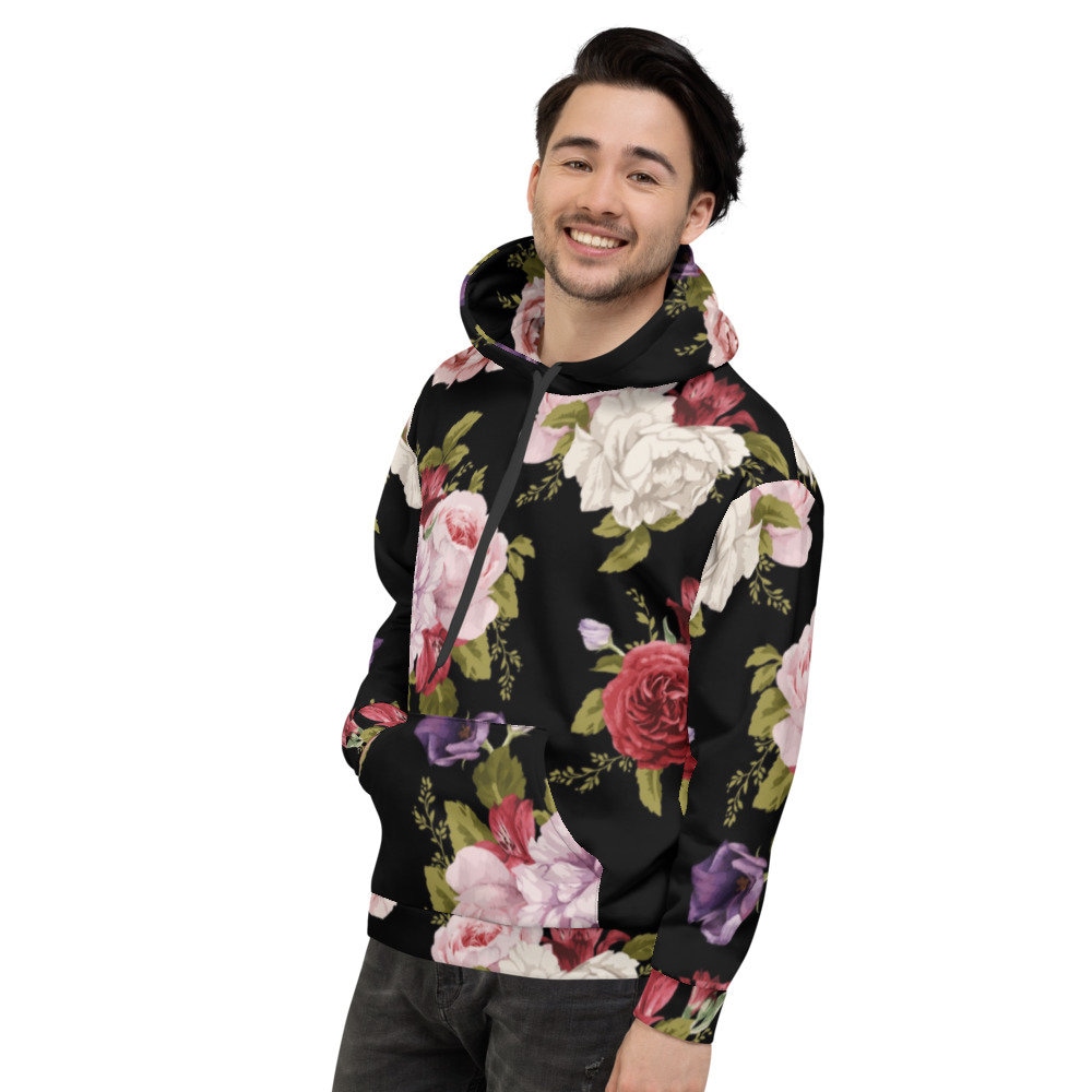 Black floral hoodie clearance
