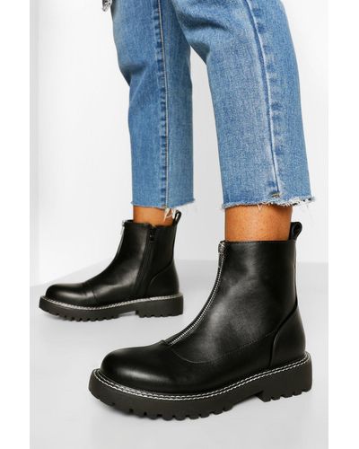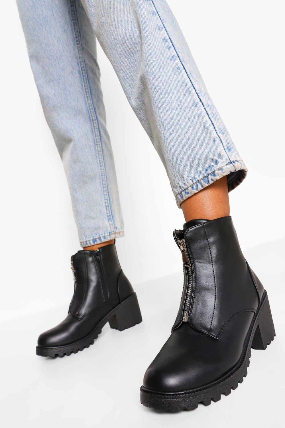 Zip front biker boots clearance, Boohoo ME clearance