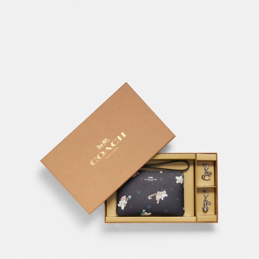 Coach snowman wristlet clearance, COACH UNBOXING Boxed Corner Zip Wristlet With Snowman Print / C7401 / Midnight - YouTube clearance