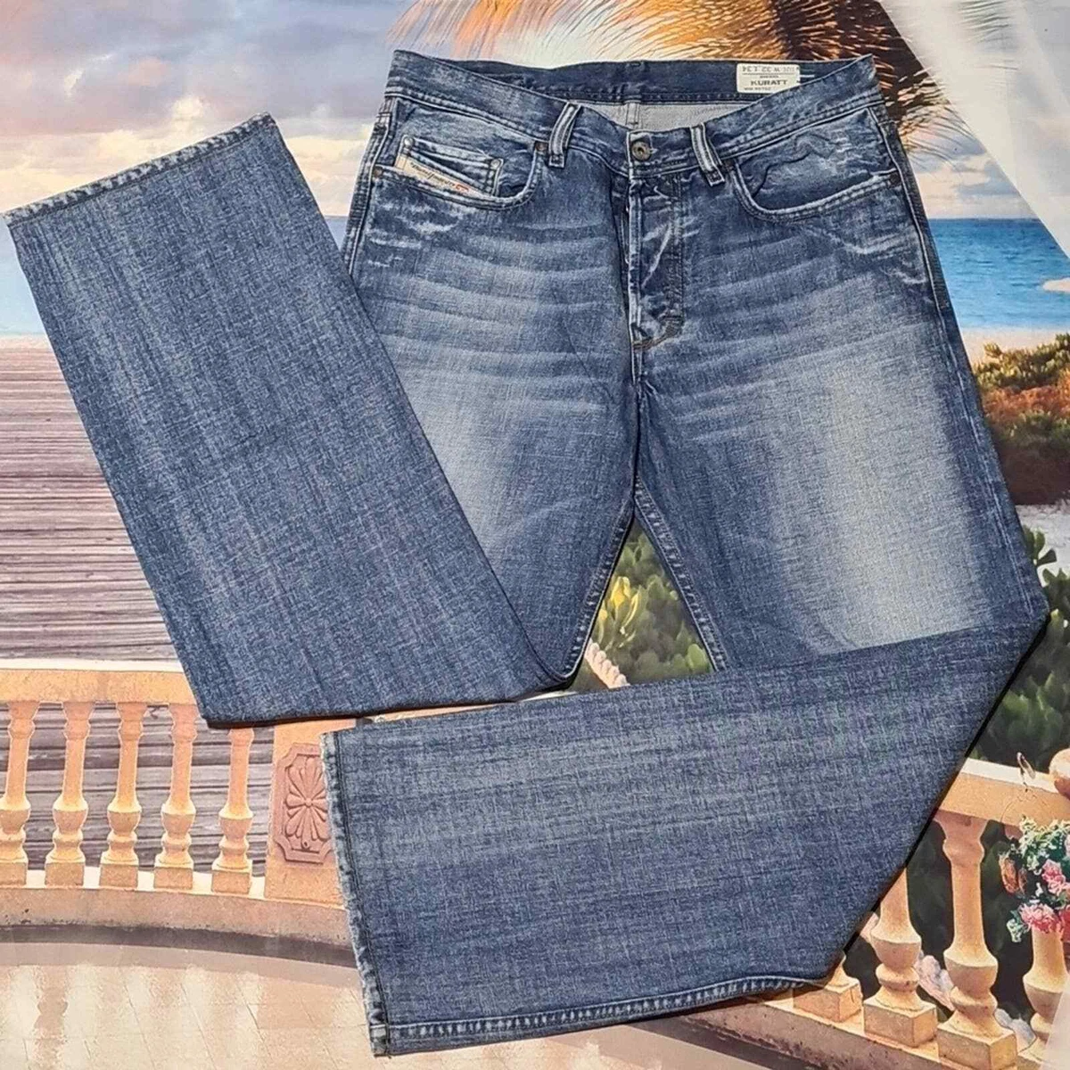 Diesel kuratt clearance, DIESEL KURATT MENS JEANS ACTUAL 33X32 MEDIUM WASH MADE IN ITALY ORANGE STITCH – CDE clearance