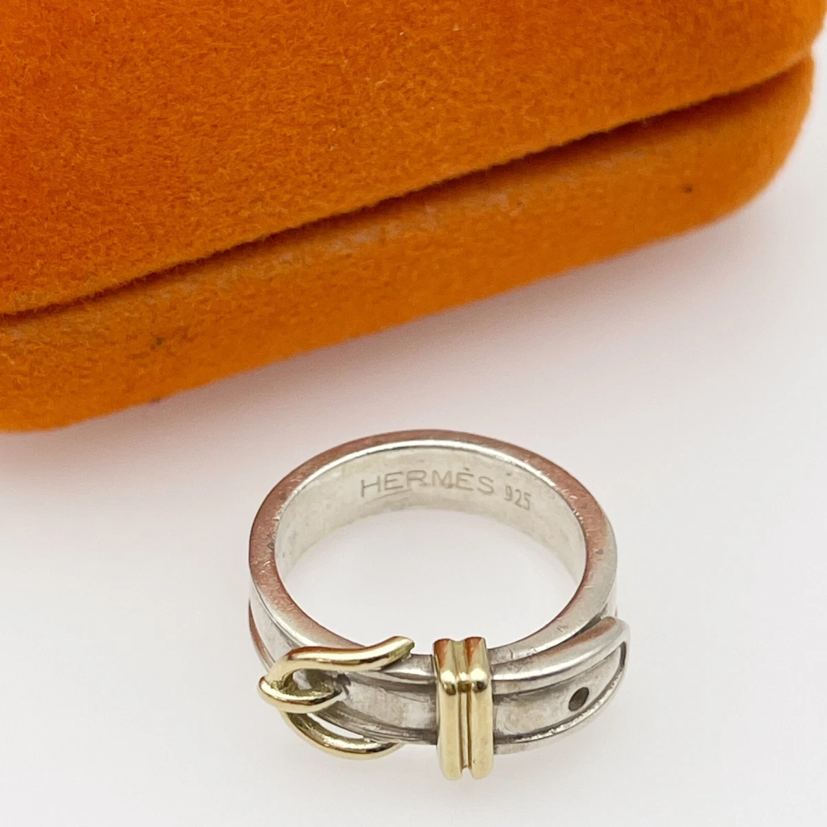 Vintage hermes rings clearance, Vintage Hermes 18k Yellow Gold u0026amp; Sterling Silver Buckle Ring Size 48 | eBay clearance