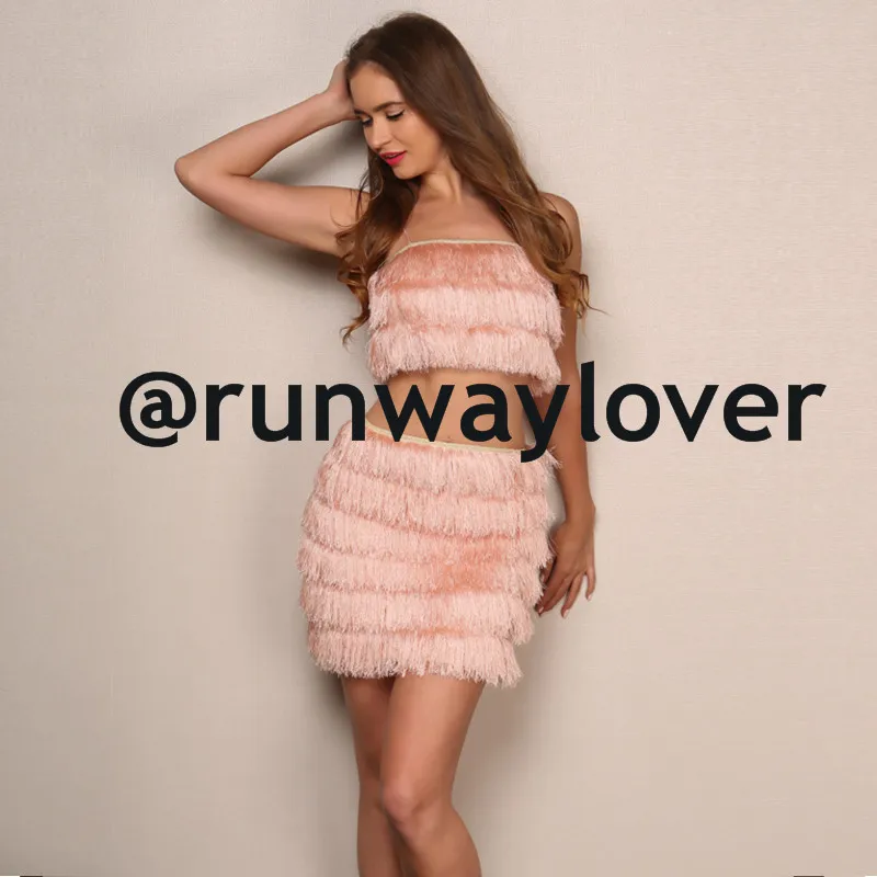 - Cheap Fringe crop top and skirt
