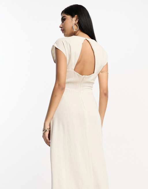 Asos ivy and oak clearance, ASOS DESIGN linen high neck twist front midi dress in natural | ASOS clearance