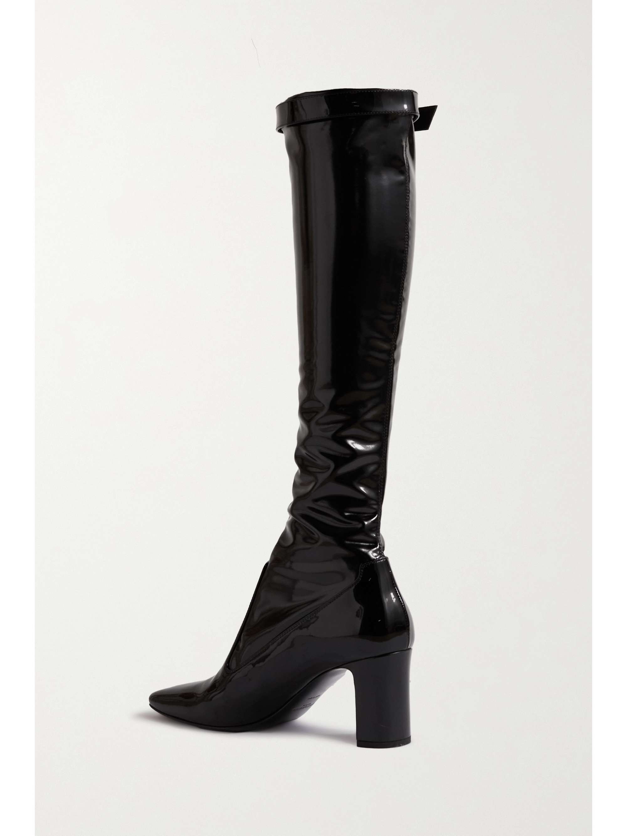 Boots ysl elle clearance, SAINT LAURENT Elle buckled-embellished patent-leather knee boots | NET-A-PORTER clearance