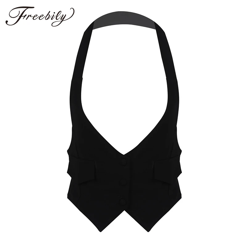 - Cheap Black halter neck waistcoat ladies