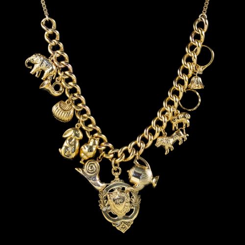 Vintage gold charm necklace clearance, Laurelle Antique Jewellery: New clearance