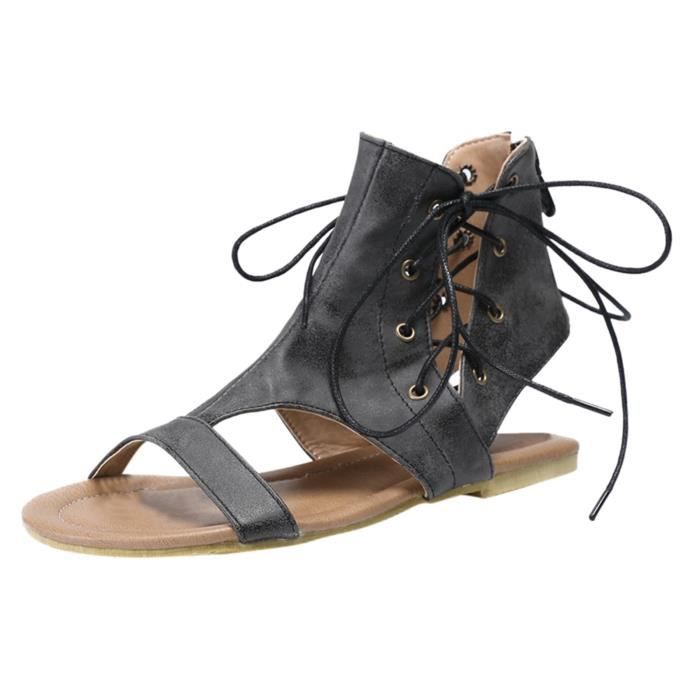 Sandales compensées avec lacets clearance, Sandales au genou Bout ouvert Sexy à clearance