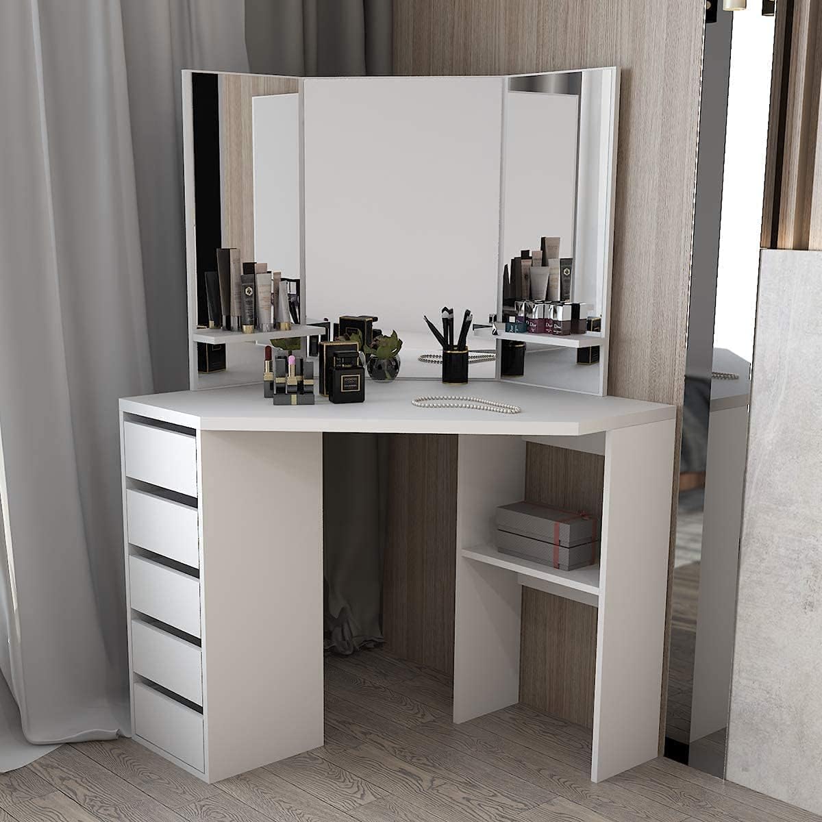 White gloss corner dressing table clearance, Corner Dressing Table Makeup Desk with clearance