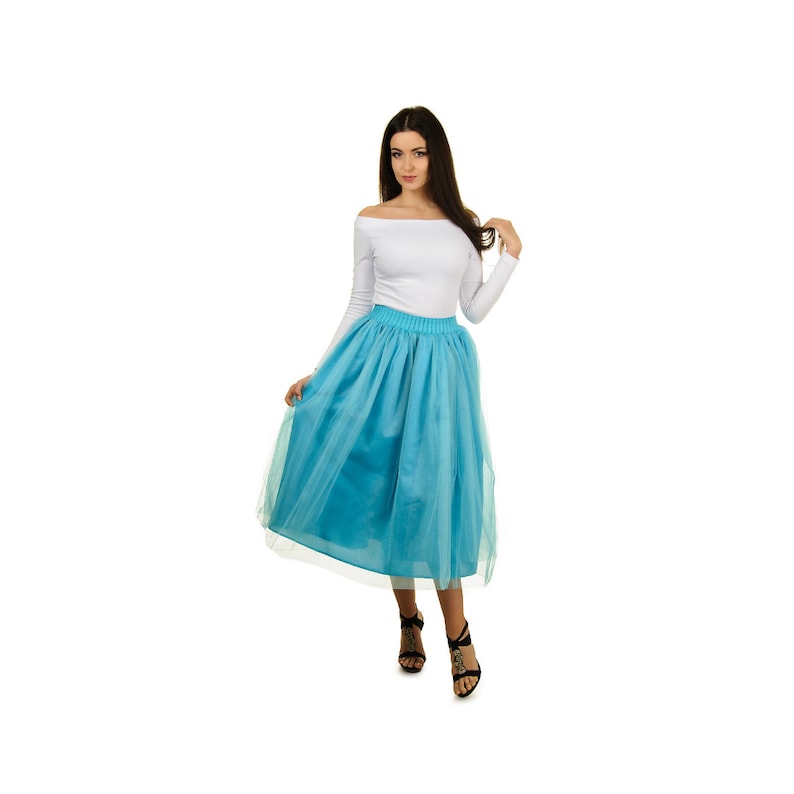 Tulle skirt wedding guest clearance, Adult women bridesmaid blue tulle skirt clearance