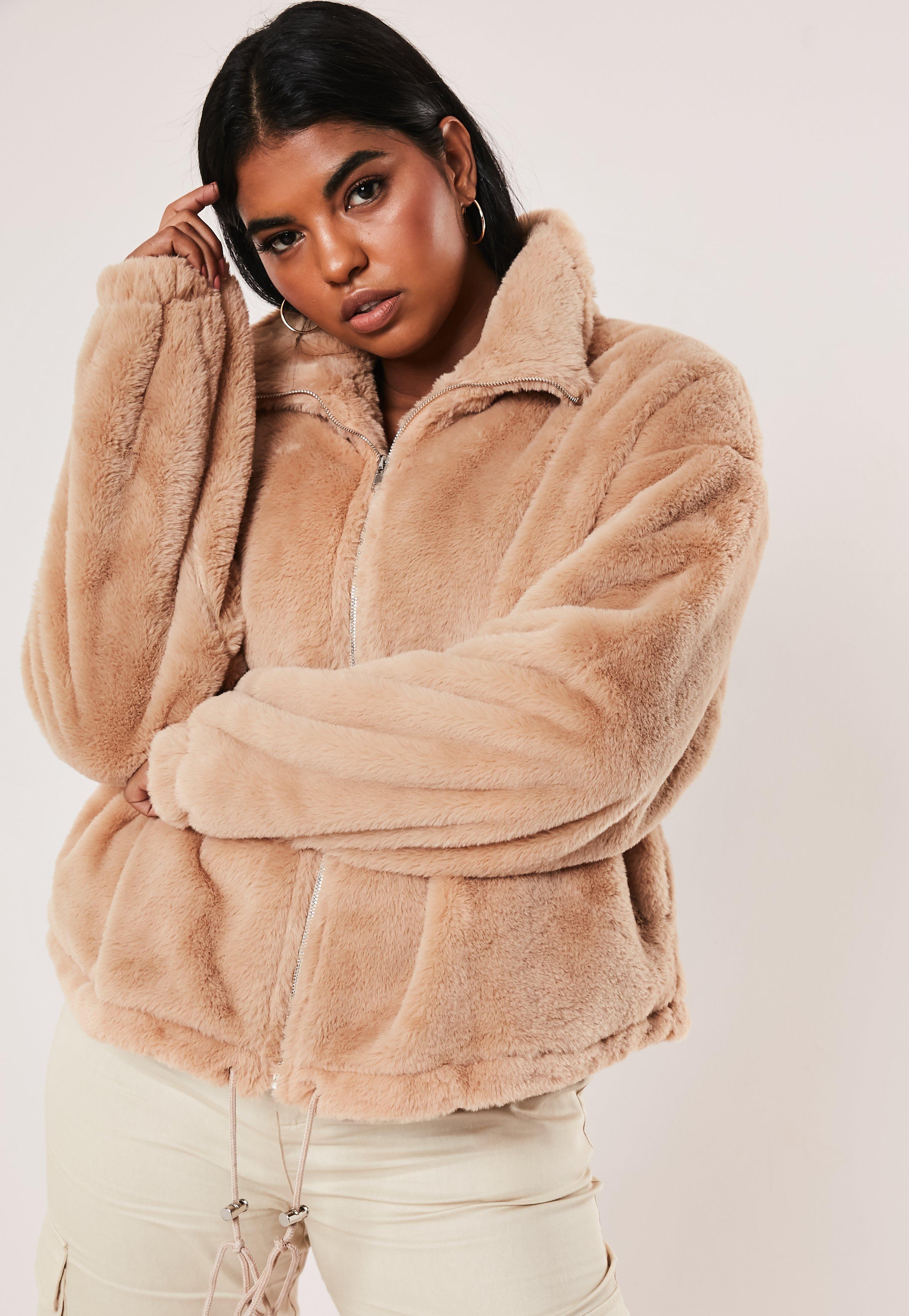 - Cropped faux fur bomber jacket clearance
