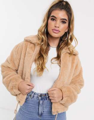 - Cropped faux fur bomber jacket shop