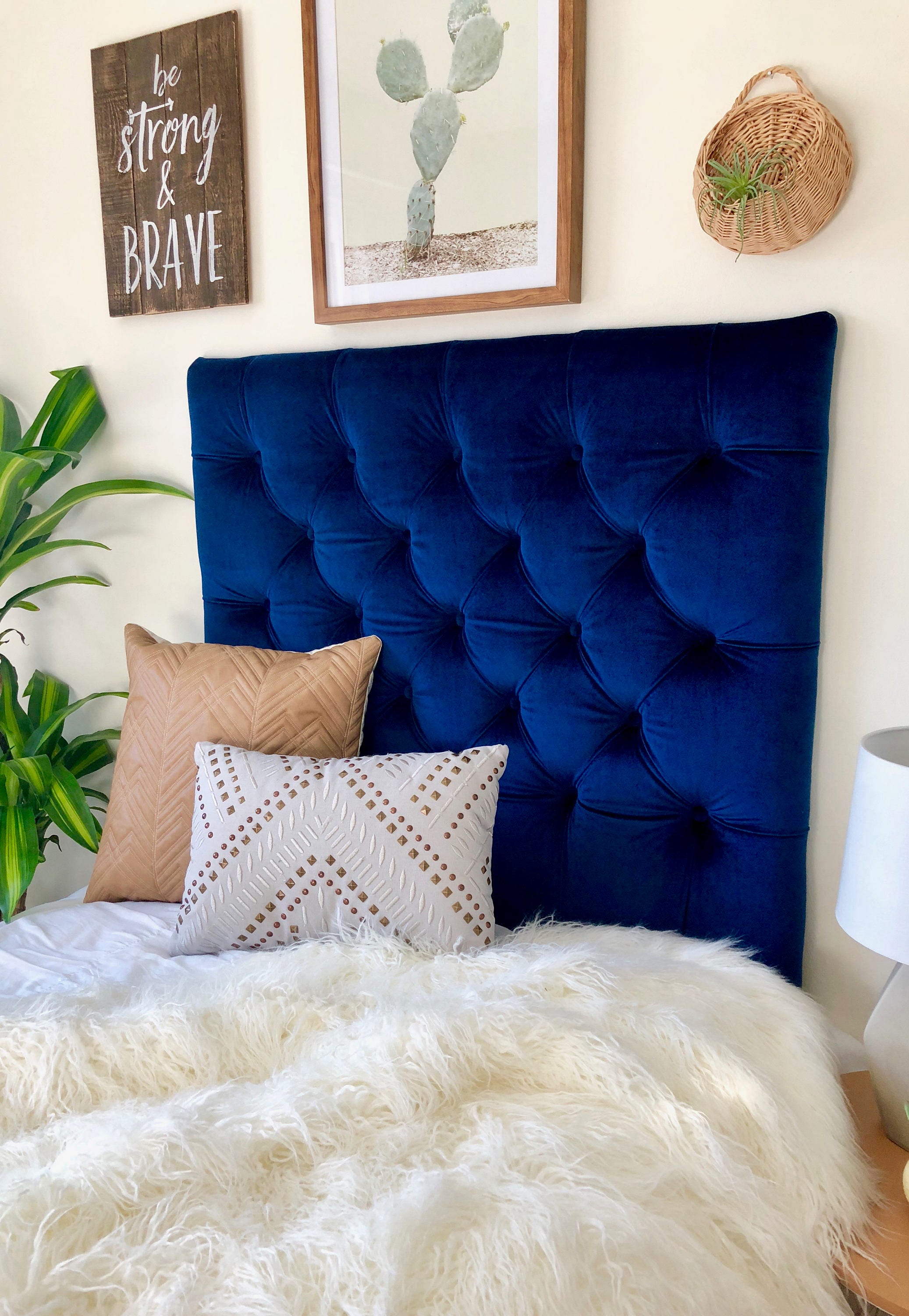 Headboard blue velvet clearance, Dorm Room Twin Upholstered Headboard in clearance