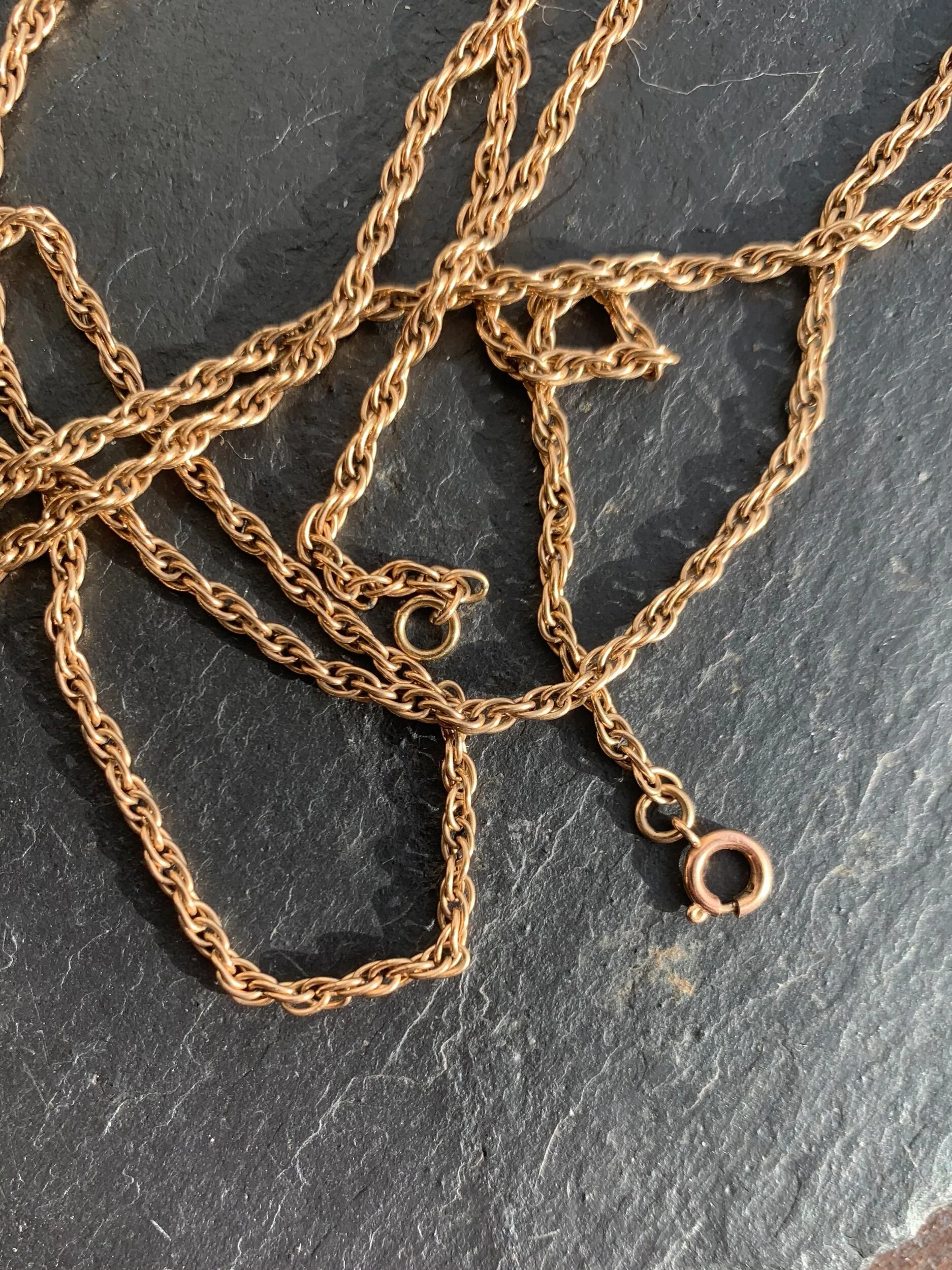 Chunky 9ct gold necklace clearance, Vintage 9ct gold long rope link chunky clearance