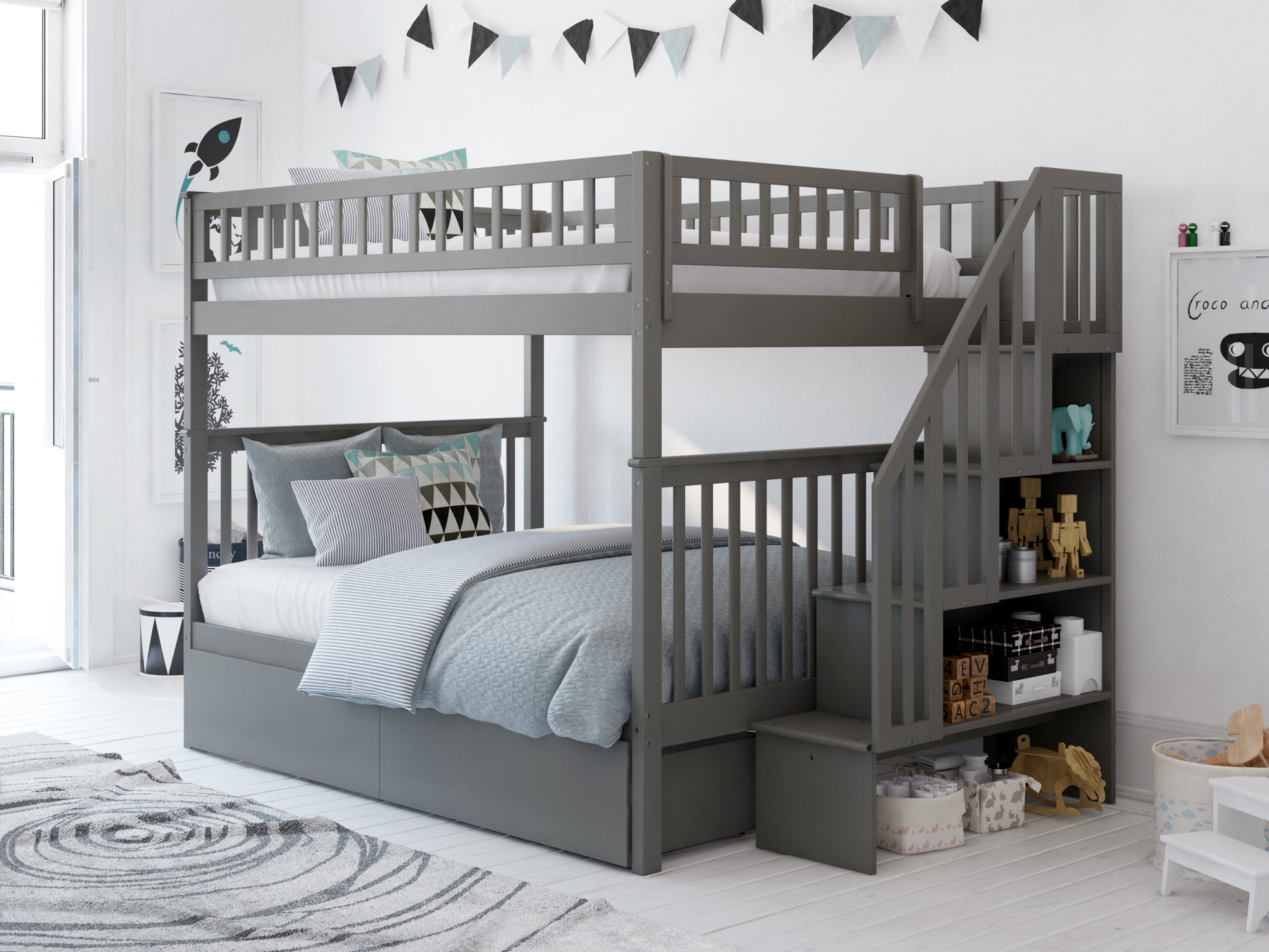 Light grey bunk beds clearance
