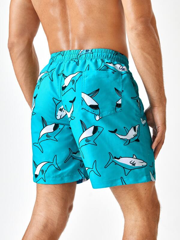 - Mens shark print swim trunks