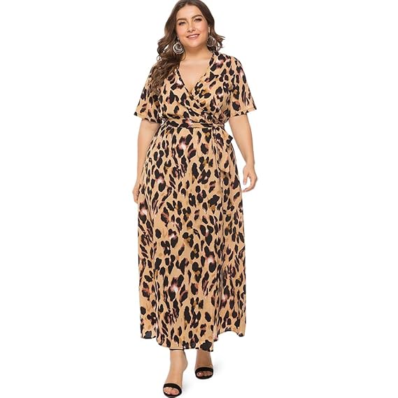 Leopard print wrap dress plus size clearance, Leopard Printed Wrap Dress Plus Size clearance