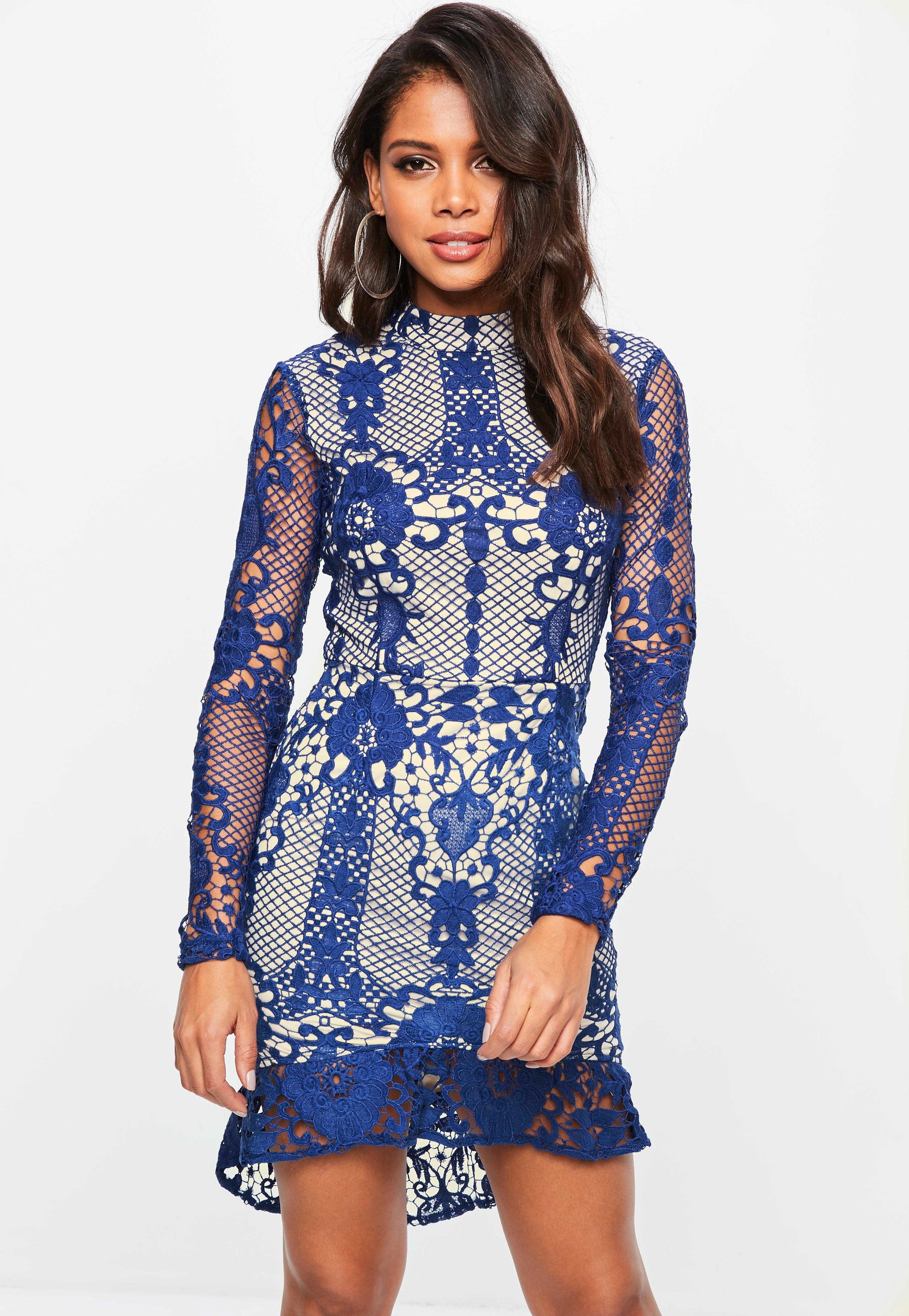 Missguided blue lace dress clearance, Long Sleeve Bodycon Dress clearance