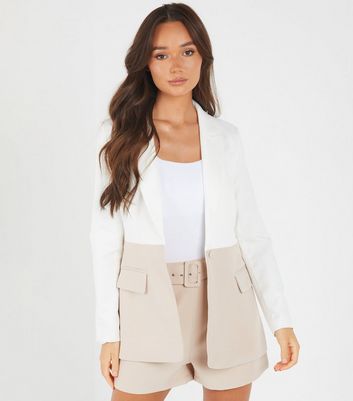 Quiz white blazer clearance, QUIZ Stone and White Pocket Blazer clearance