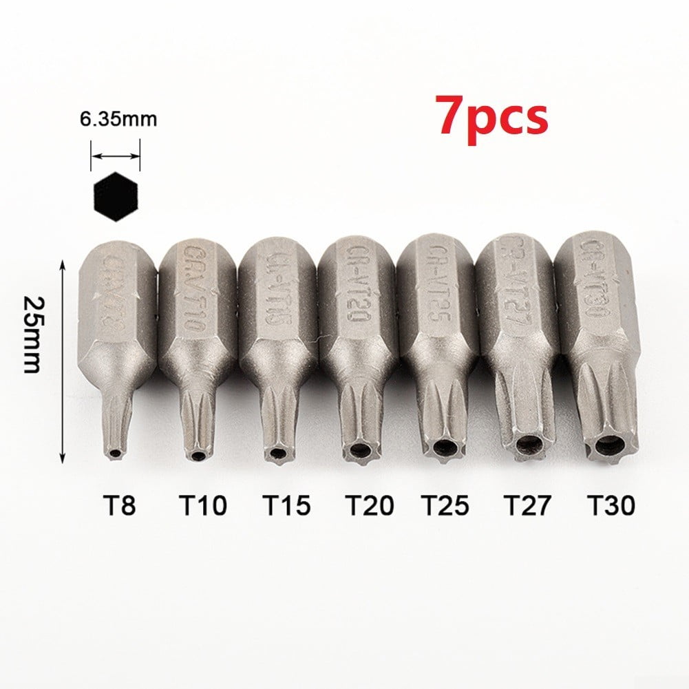T8 screwdriver with hole clearance, 7pcs 25mm Torx Screwdriver Bits With clearance