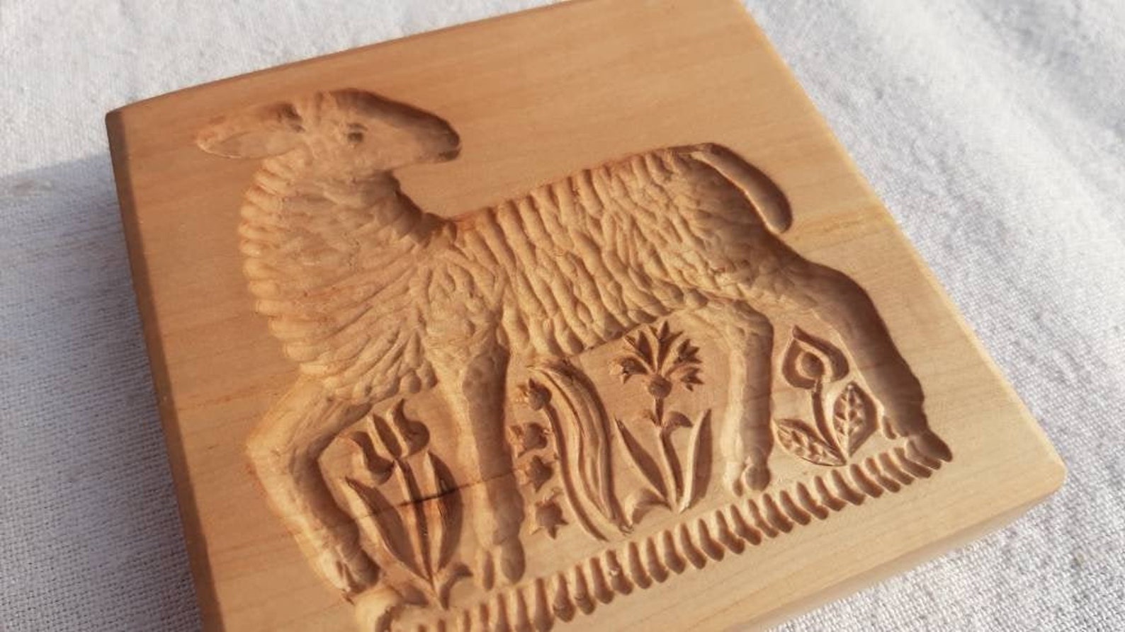 Carved wooden cookie molds clearance, Hand carved pear wood cookie mold with lamb design. | Etsy clearance