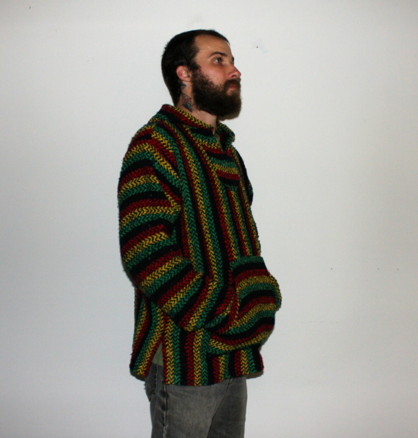 All black drug rug clearance, Hippie Drug Rug. Vintage Largel Baja Hoodie. Retro Rasta Boho clearance