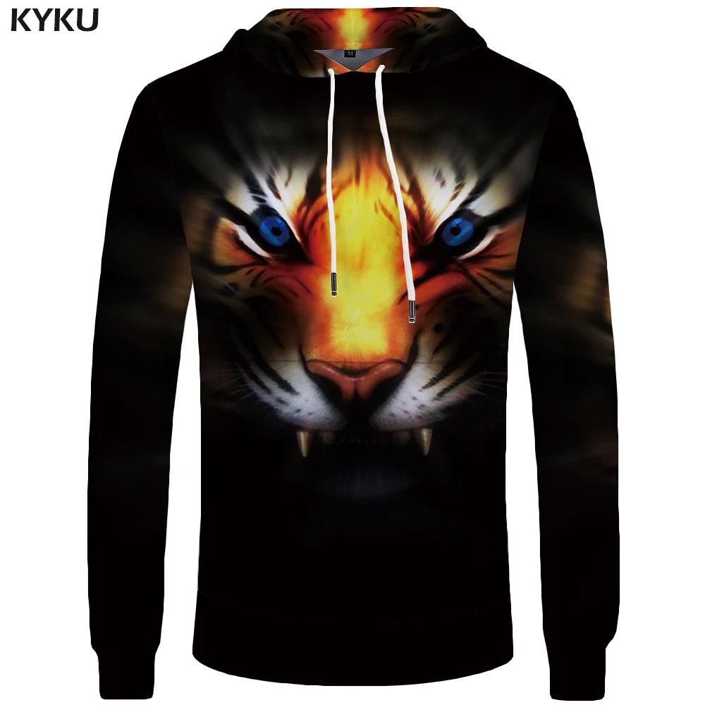 Black hoodie with tiger clearance, KYKU Tiger Hoodie Men Black Hoodies Hood Cool 3d Print Hoodie Animal Sweatshirt Long Gothic Mens clearance