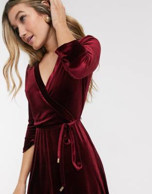 - Wine velvet wrap dress clearance