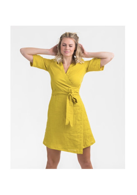 Casual kimono dress clearance, Linen Wrap Dress Flax Kimono Dress clearance