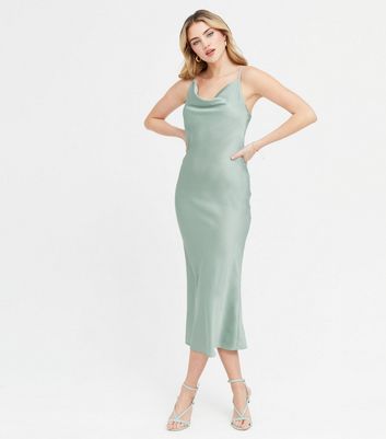 - Green cowl neck satin dress clearance