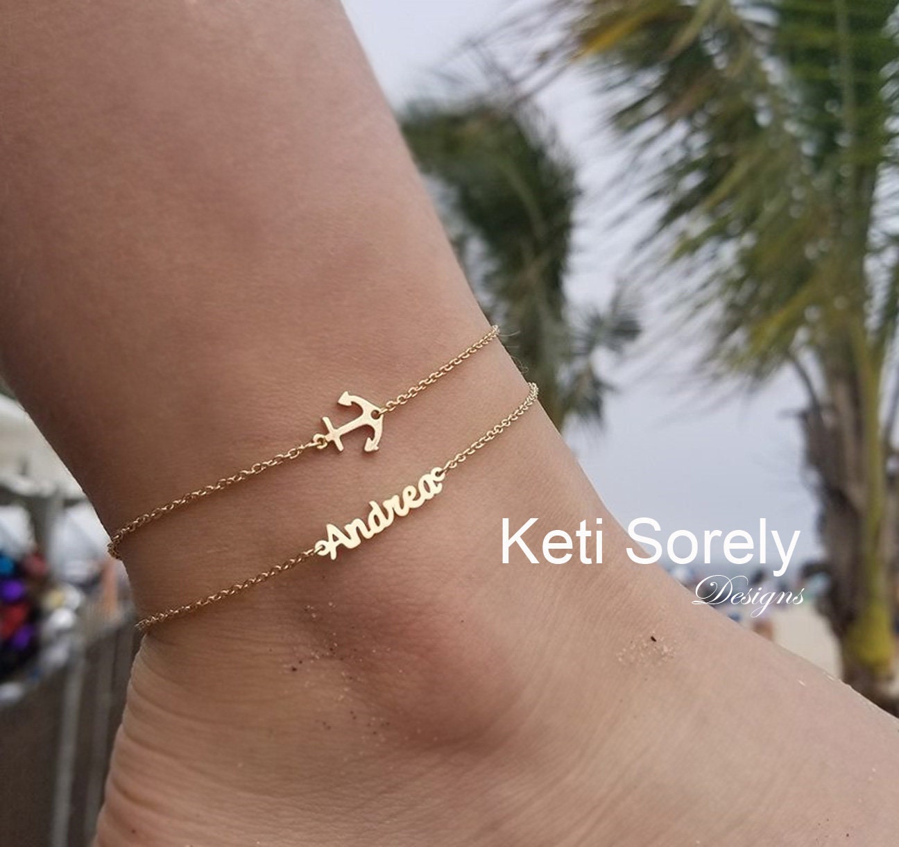 14k gold name anklet clearance